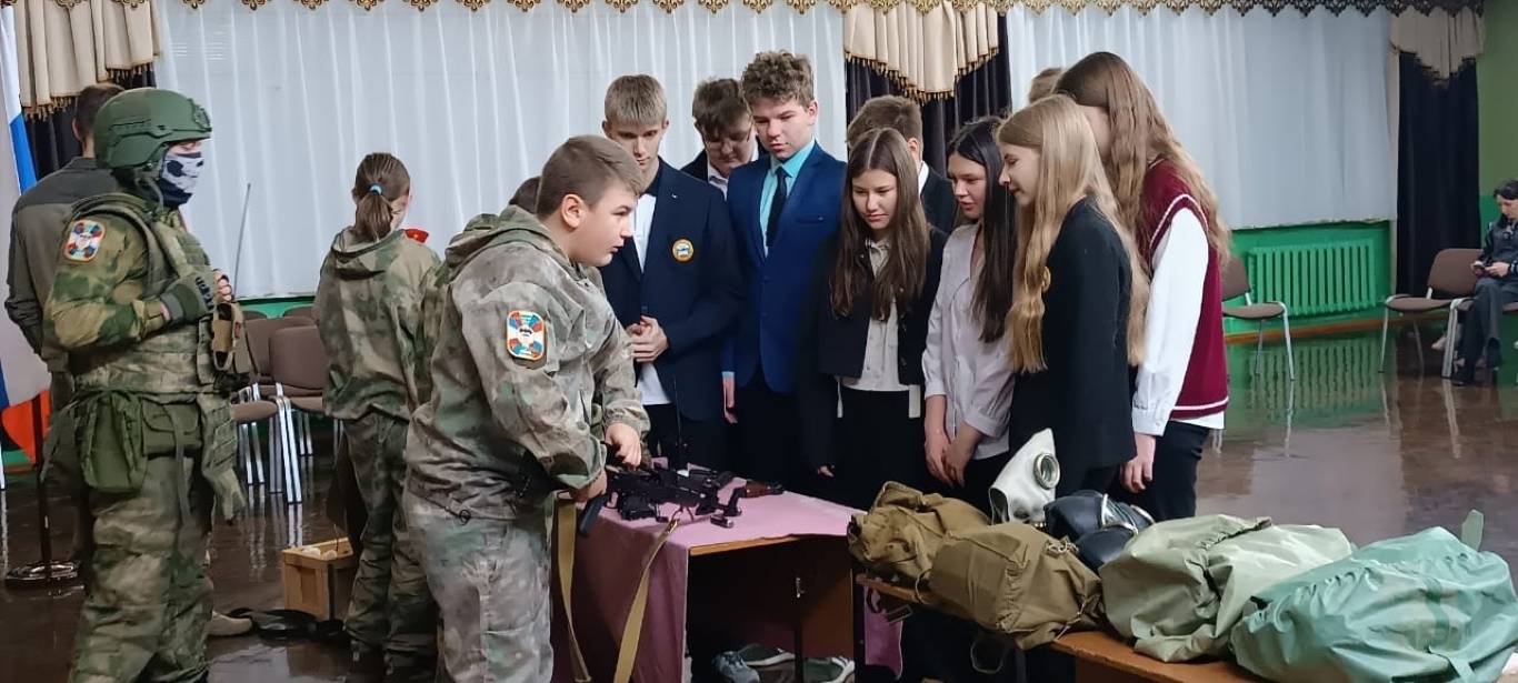 После церемонии для учеников 9А, 9Г, 8Б и 8В классов был проведен мастер-класс по начальной военной подготовке (НВП) участниками военно-патриотического клуба "Разведчик" МКУКМЦ "Комсомолец" г. Курчатов.